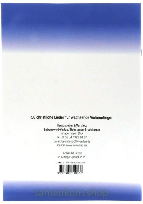 Die Klavierhefte „25 christliche Lieder für kleine Klavierfinger Heft 1 & 2“ (Artikel 3818 & 3819) sind mit diesem Violinenheft kombinierbar. Man kann die
