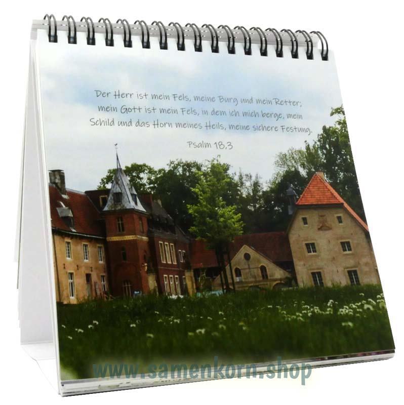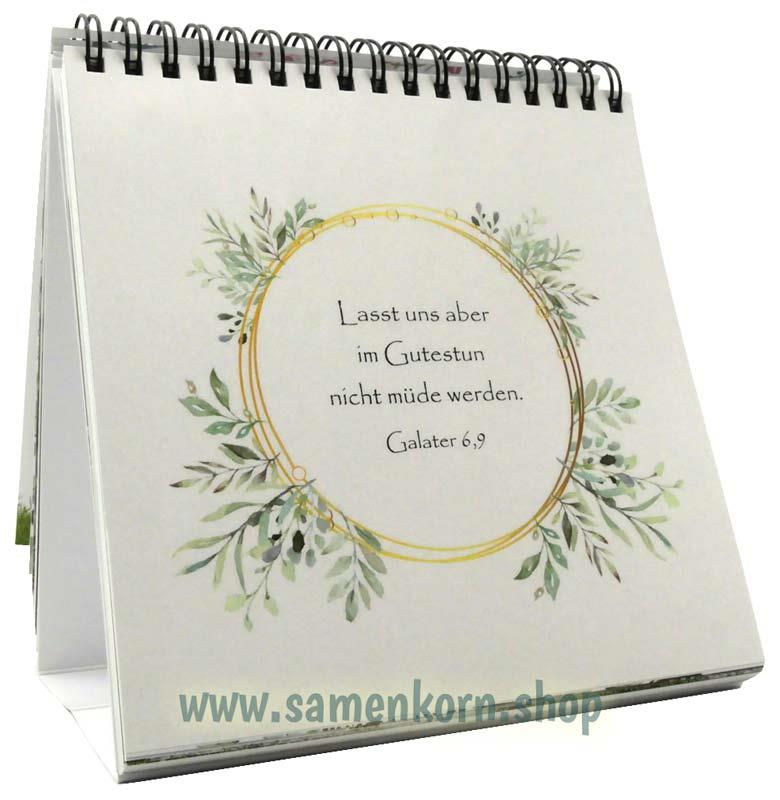 Aufstellbuch mit 52 ermutigenden Bibelversen und verschiedenen Fotos und Illustrationen.
