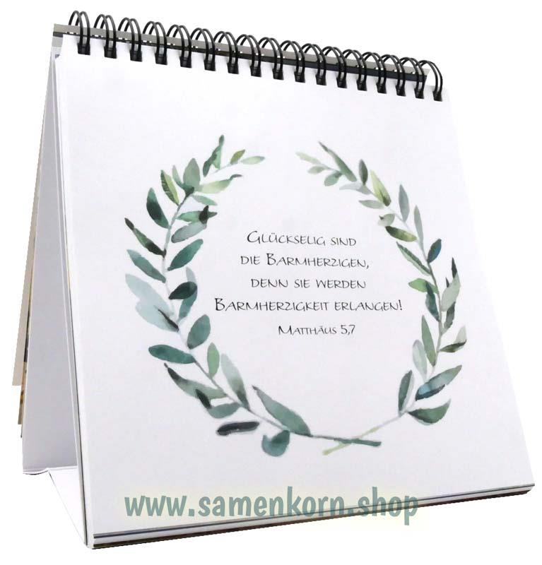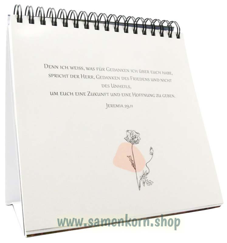 Aufstellbuch mit 52 ermutigenden Bibelversen und verschiedenen Fotos und Illustrationen.
