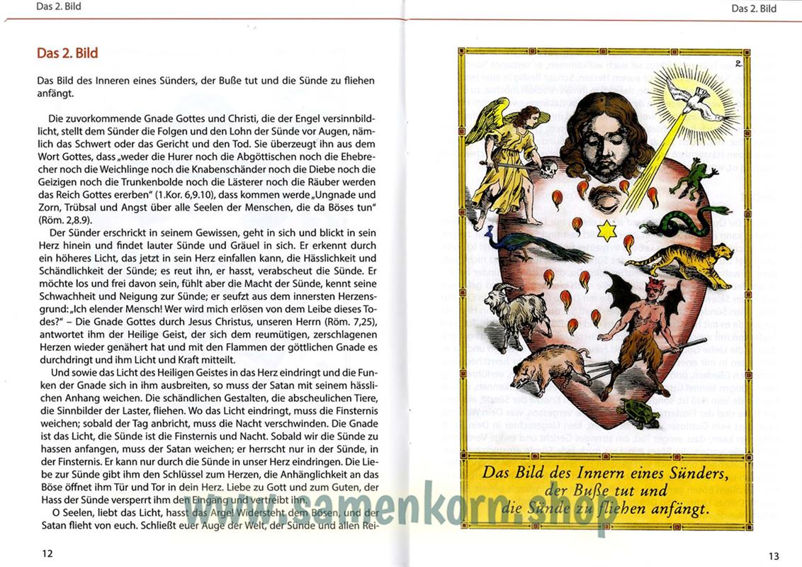 Der Zustand des Herzens eines Menschen wird in zehn Sinnbildern von Johannes Goßner (1773-1858) dargestellt und erklärt. Auf jedem Bild erscheinen ein Herz und ein Gesicht. Aus dem Zustand des Herzens, das der Sitz und die Werkstätte des Guten und Bösen ist, muss der ganze Mensch beurteilt werden.