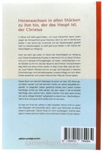 Dieses Buch von Heinrich Dallmeyer ist schon vor über 100 Jahren geschrieben worden und hat dennoch nichts von seiner Aktualität eingebüßt. Im Gegenteil: Dieser geistliche Schatz kann jedem echten Nachfolger Christi zur Hilfe werden, der sein Leben in die ernsthafte Nachfolge, dem Lamme nach, stellen möchte, und dazu keine Scheu hat, seine "Alltags-Sünden" aufgedeckt zu bekommen. Gleichzeitig erhält er eine Lösung anhand Gottes Wort an die Hand.