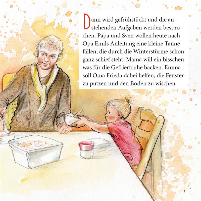 Beim Frühjahrsputz hilft die Sonne Emma und Oma Frieda, den Schmutz auf der Fensterscheibe gut zu erkennen. Danach erzählt Oma Frieda Emma, warum wir die Sonne zum Leben brauchen und warum Gott für uns wie die Sonne ist.