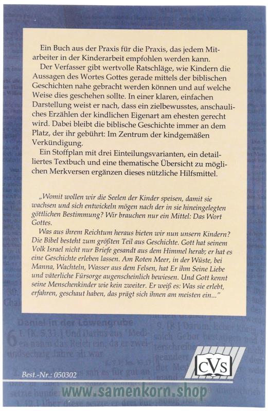 Der Verfasser gibt wertvolle Ratschläge, wie Kindern die Aussagen des Wortes Gottes gerade mittels der biblischen Geschichten nahe gebracht werden können und auf welche Weise dies geschehen sollte. In einer klaren, einfachen Darstellung weist er nach, dass ein zielbewusstes, anschauliches Erzählen der kindlichen Eigenart am ehesten gerecht wird. Dabei bleibt die biblische Geschichte immer an dem Platz, der ihr gebührt: Im Zentrum der kindgemäßen Verkündigung.