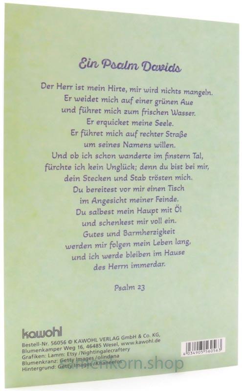Bibeltext aus Psalm 23 auf der Rückseite: