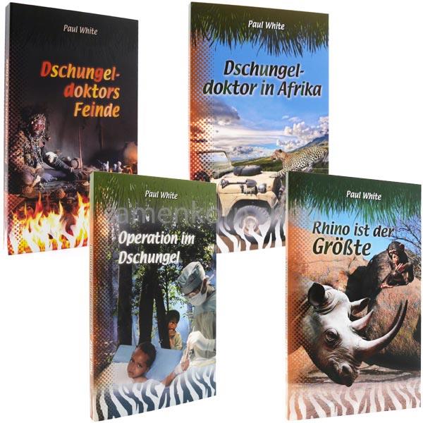 4 Bände der beliebten Reihe »Dschungeldoktor« von Paul White als Paket – spannende Geschichten aus der Afrika-Mission sowie Tierfabeln. Für Kinder und Erwachsene