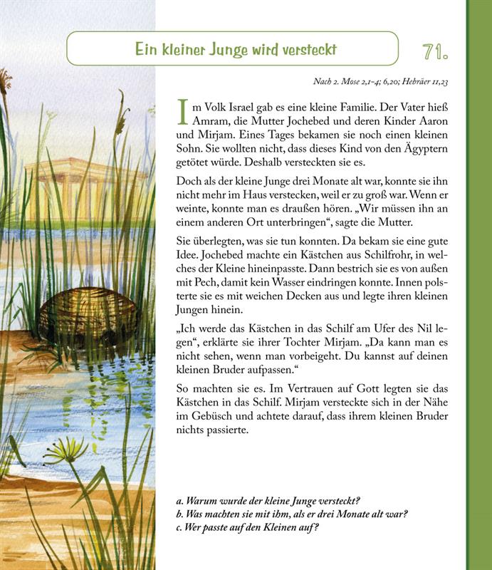 Ergänzt durch farbige Bilder sollen sie unseren Kindern helfen, Gott besser kennenzulernen. Damit die biblischen Wahrheiten sich besser einprägen, sollen die Fragen Hilfestellung geben und zum weiteren Nachdenken anregen.
