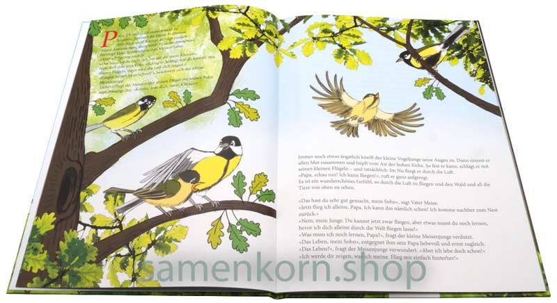 »Was muss ich noch lernen, Papa?«, fragt der kleine Meisenjunge verdutzt. »Das Leben, mein Sohn«, entgegnet ihm sein Papa liebevoll und ernst zugleich. »Das Leben?«, fragt der Meisenjunge verwundert. »Aber ich lebe doch schon!« »Ich werde dir zeigen, was ich meine. Flieg mir einfach hinterher!«