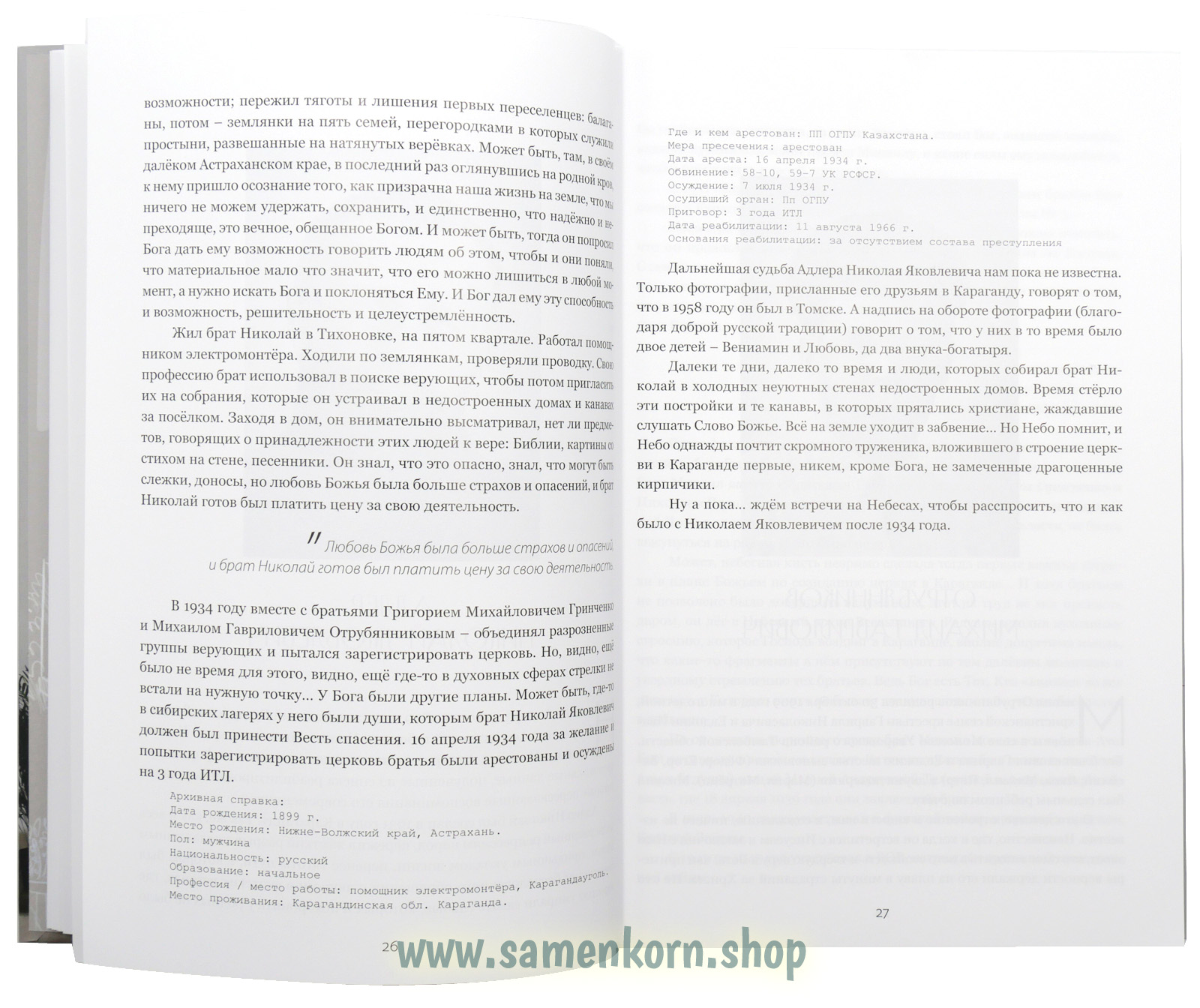 Эта книга - история Карагандинской церкви в лицах. В ней собрано 90 биографий мужей веры, заложивших основание церкви, формирующих её характер на протяжение вот уже 90 лет, поддерживая дух евангельской, основательной, богобоязненой и фундаментальной общины.