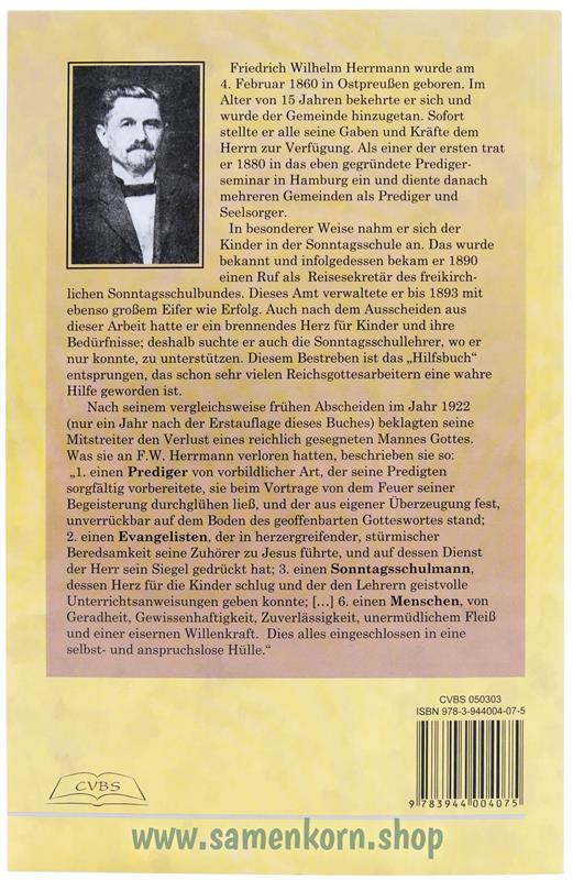 Der Autor hatte ein brennendes Herz für Kinder und ihre Bedürfnisse; deshalb suchte er auch die Sonntagschullehrer, wo er nur konnte, zu unterstützen. Diesem Bestreben ist das "Hilfsbuch" entsprungen, dass schon vielen Reichsgottesarbeitern eine wahre Hilfe geworden ist.