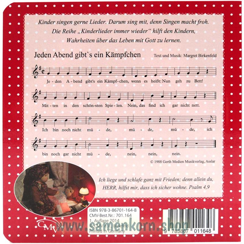 Pappbuch mit dem Kinderlied „Jeden Abend gibt´s ein Kämpfchen“ und liebevollen Farbfotografien.
