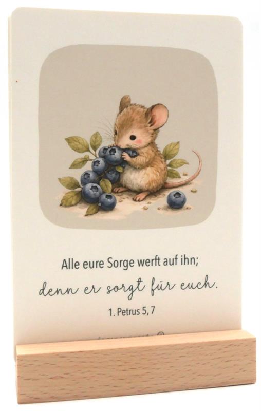 Stärke den Glauben deiner Kinder mit liebevoll gestalteten Bibelvers-Lernkarten! Das Set besteht aus 10 Karten mit Tierbildern im Format DIN A6 und kindgerechten, ermutigenden Bibelversen und einem Holzaufsteller.