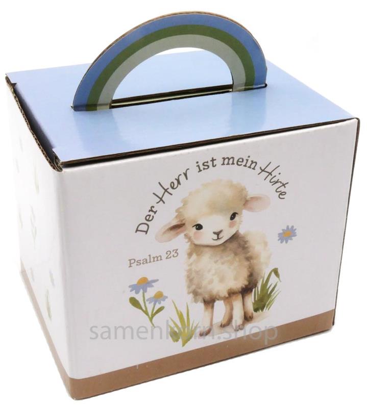 Ideale Größe für Kinder: Tasse mit niedlichem Schäfchen-Motiv und Vers: "Der Herr ist mein Hirte".