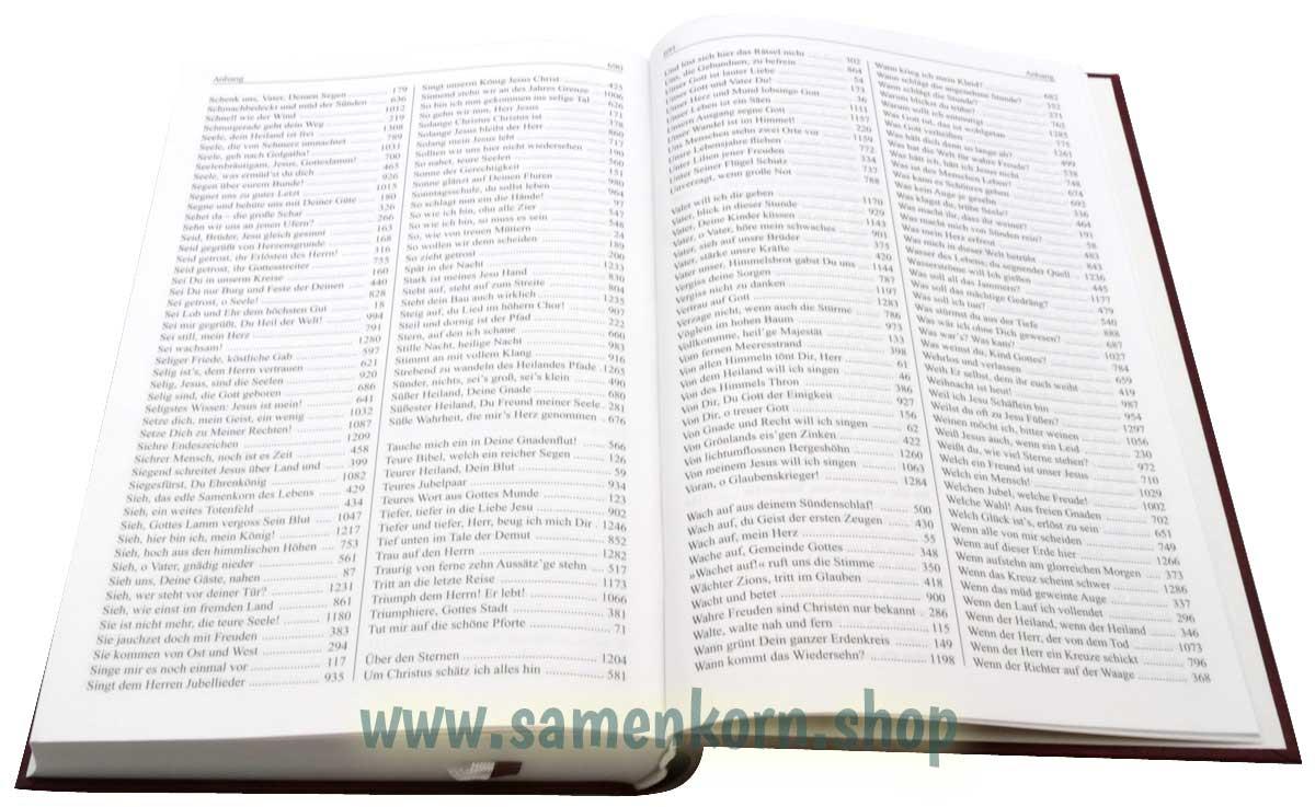 Überarbeitete Notenausgabe mit 674 (von 1311) geistlichen Liedern für den allgemeinen Gesang in den Gemeinden. Vierstimmiger Satz, neue Rechtschreibung.
