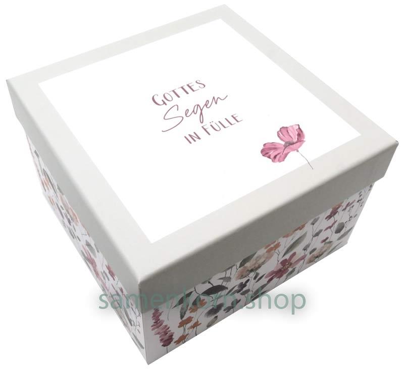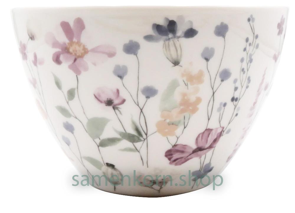 Passend zur Tasse gibt es auch eine Müslischale in neuer, großer Form. Das Blumendesign und der Text "Gottes Segen in Fülle" im Inneren machen die Schale zum Blickfang auf dem Tisch, z.B. für Knabbereien. In passend gestalteter Geschenkbox verpackt, Inhalt: ca. 0,6 l.