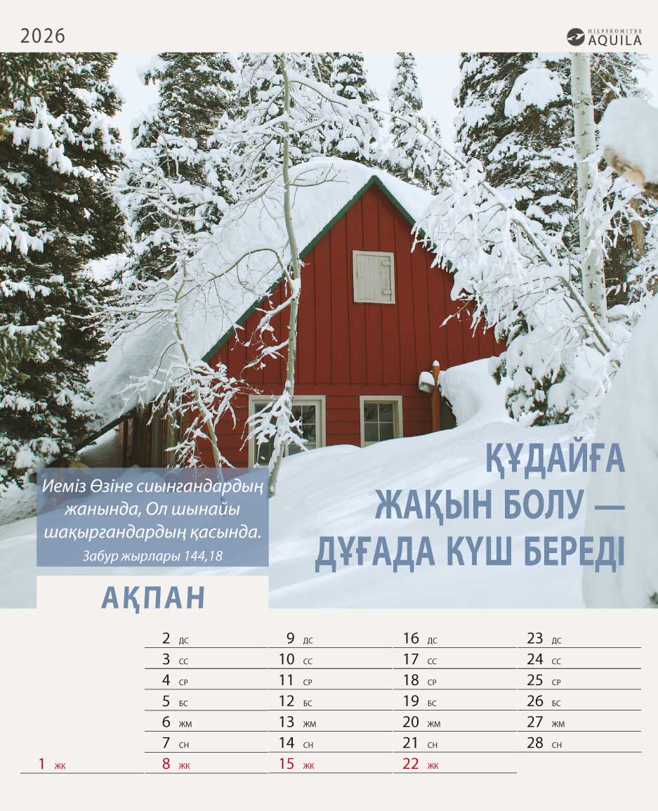 Настенный календарь на 2026 год с библейскими стихами на казахском языке и местом для записей