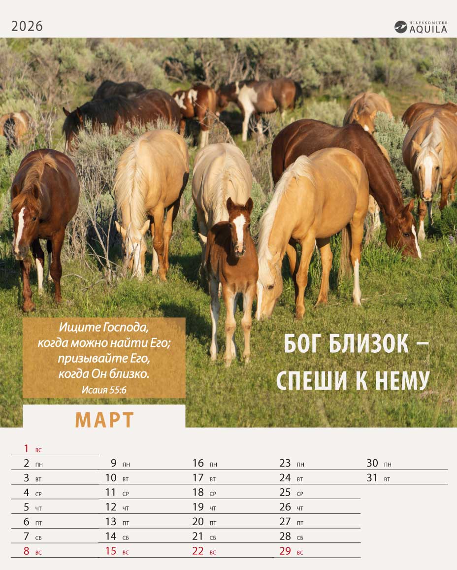 Настенный календарь на 2026 год с библейскими стихами на русском языке и местом для записей
