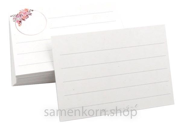 Inhalt: 50 hübsch gestaltete, linierte Karten, die auf der Vorder- und Rückseite individuell beschriftet werden können.