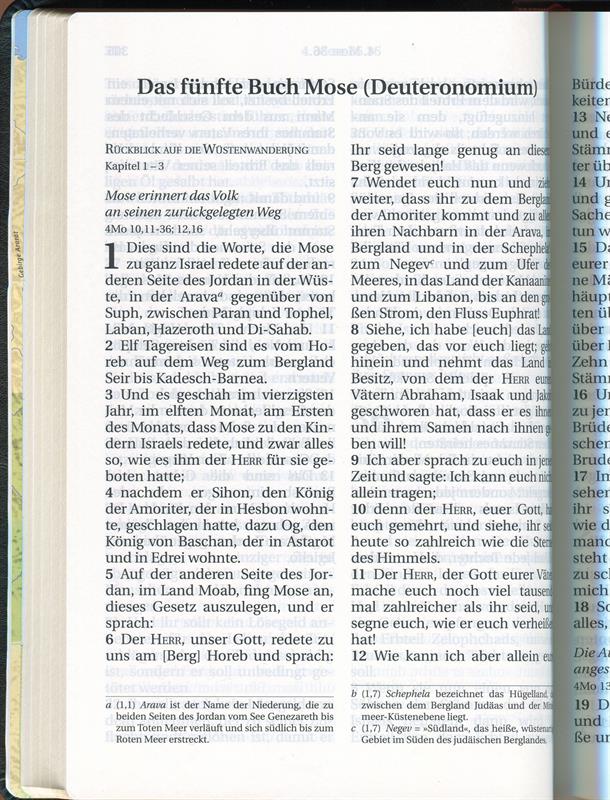 Mit zahlreichen Erklärungen biblischer Wörter in Fußnoten sowie einem ausführlichen Anhang mit Sach- und Worterklärungen, Übersichtstabellen und farbigen Karten. Ohne Parallelstellen.