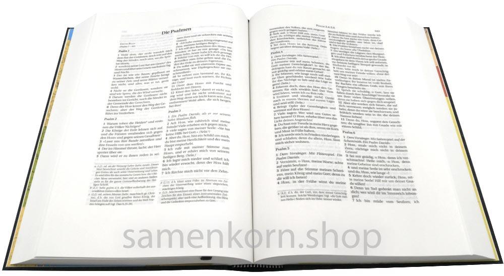 Eine volkstümliche, gut verständliche Bibel, wie es um die vorige Jahrhundertwende die Luther Bibel 1912 war. Vom Urtext her reicht sie, wo es nötig ist, an die Genauigkeit der Elberfelder Bibel und verliert trotzdem nicht ihre seelsorgerliche Sprache. Die Bibel wird sich - je nach Ausgabe - sowohl als missionarische Bibel, als auch als Studienbibel hervorragend eignen. Zahlreiche Erklärungen biblischer Wörter in Fußnoten sowie ein ausführlicher Anhang mit Sach- und Worterklärungen, Übersichtstabellen und Karten bieten Hilfen für den Bibelleser.