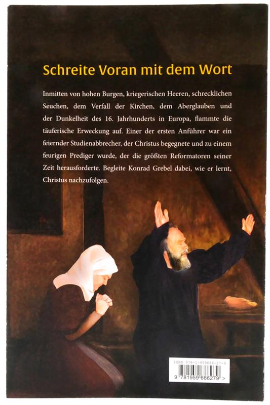 Inmitten von hohen Burgen, kriegerischen Heeren, schrecklichen Seuchen, dem Verfall der Kirchen, dem Aberglauben und der Dunkelheit des 16. Jahrhunderts in Europa, flammte die täuferische Erweckung auf. Einer der ersten Anführer war ein feiernder Studienabbrecher, der Christus begegnete und zu einem feurigen Prediger wurde, der die größten Reformatoren seiner Zeit herausforderte. Begleite Konrad Grebel dabei, wie er lernt, Christus nachzufolgen.