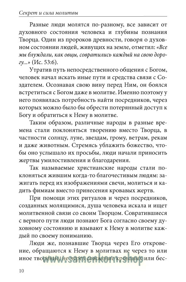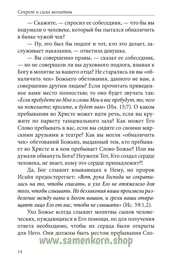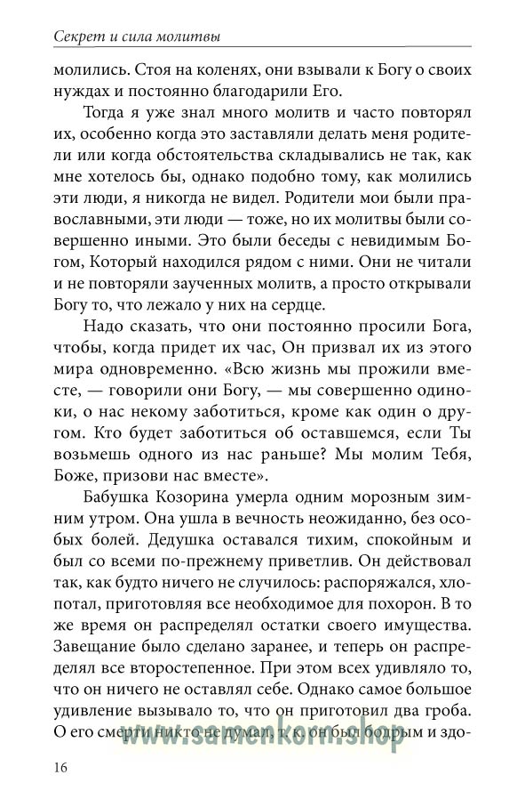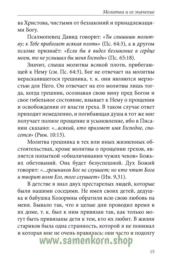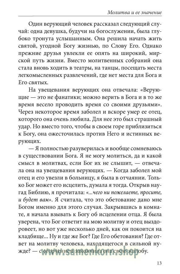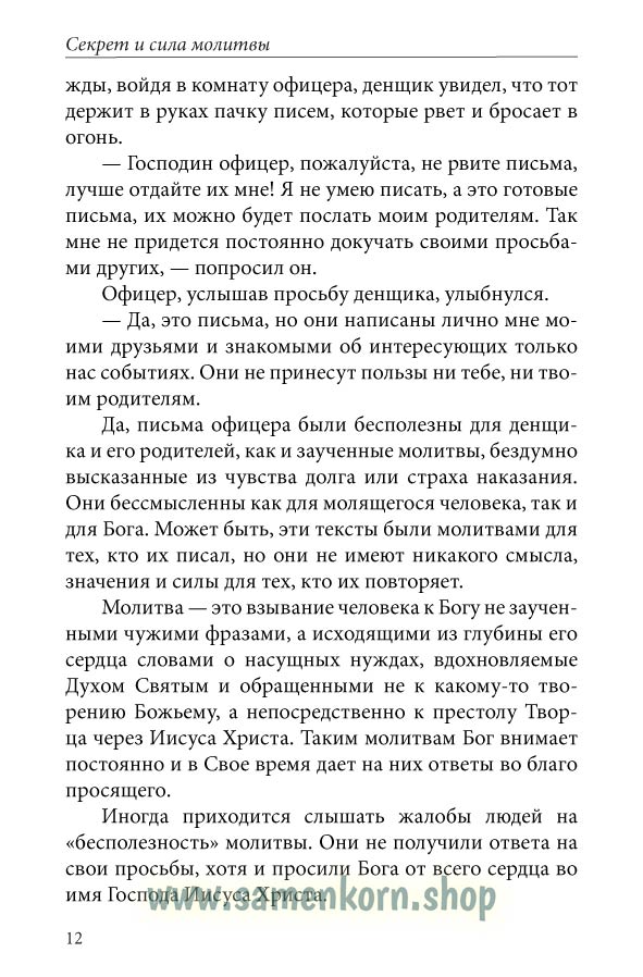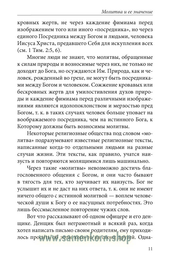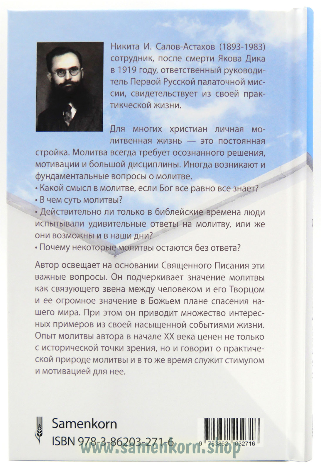 Автор использует Писание, чтобы пролить свет на эти важные вопросы. Он подчеркивает важность молитвы как связующего звена между человеком и его Творцом и ее огромное значение в Божьем плане спасения нашего мира. При этом он приводит множество интересных примеров из своей богатой событиями жизни. Опыт молитвы автора в начале XX века ценен не только с исторической точки зрения, но и говорит о практической природе молитвы и в то же время служит стимулом и мотивацией для нее.