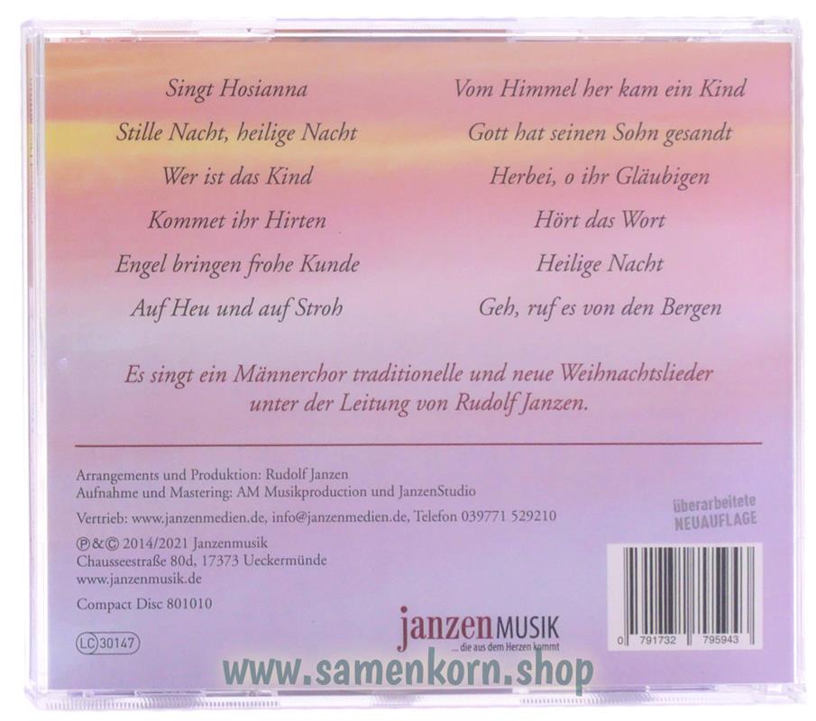 Lieder und Musik zu Weihnachten:   Aus dem Himmel auf die Erde Ich steh an deiner Krippen hier (Instrumental) Das Licht aus der Höhe Herbei, o ihr Gläubigen (Instrumental) Unser Heiland ist nun da Tot kto dwigaet mirami (Instrumental) Wo das Dunkel nicht mehr hell wird Stille Nacht (Instrumental) In eine Welt voller Dunkelheit Tochter Zion / Gloria (Instrumental) Weihnacht heißt, nach Hause kommen   CD