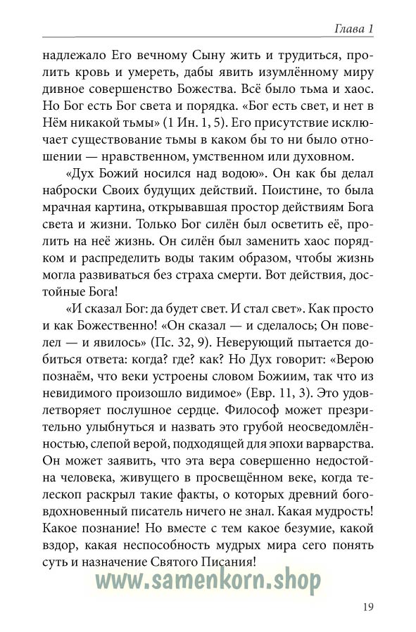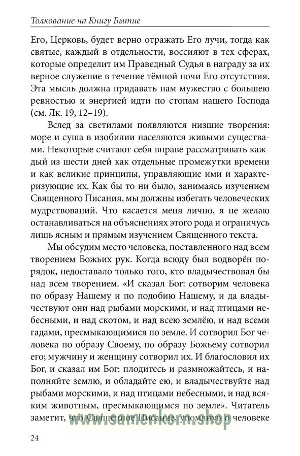 "Полагаю, что за исключением четырех Евангелий, в Библии нет книги, более интересной, чем Книга Бытие. Она представляет нам свежесть первой книги, адресованной Божьему народу. Её содержание разнообразно, поучительно и весьма драгоценно для изучающего всю книгу Божью." Чарльз Генри Макинтош