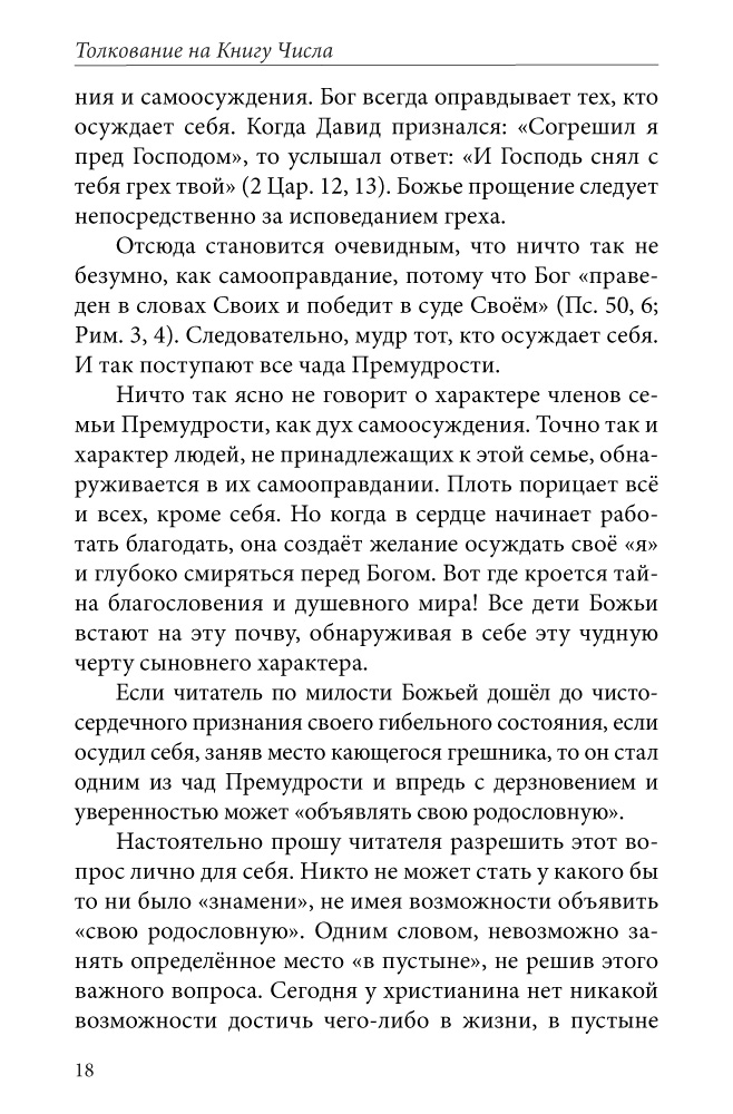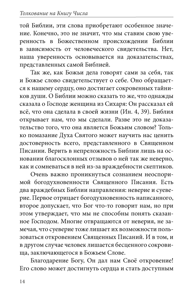 В книге Числа виден прообраз того, что мы должны делать в церкви. Божий народ показан в этой книге с трёх сторон: как воины, работники и служители или поклонники Бога. Эти три вида служения связаны с пребыванием в безусловной зависимости от Бога. В нашей борьбе, в работе, в благоговейном поклонении Богу мы зависим от Бога: все наши источники в Нём.
