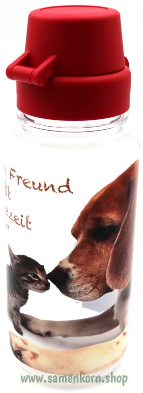 Trinkflasche aus 100% recyclebarem, geschmacks- und geruchsneutralem Tritan/Kunststoff; widerstandsfähiges, bruchfestes und robustes Material; einfaches Reinigen und Befüllen durch große Öffnung, auslaufsicher, für kohlensäurehaltige Getränke geeignet, frei von Weichmachern und BPA, HACCP-zertifiziert als Nachweis für gute Herstellung, CO2-neutrale Produktion, mit Digitaldruck, spülmaschinengeeignet.
