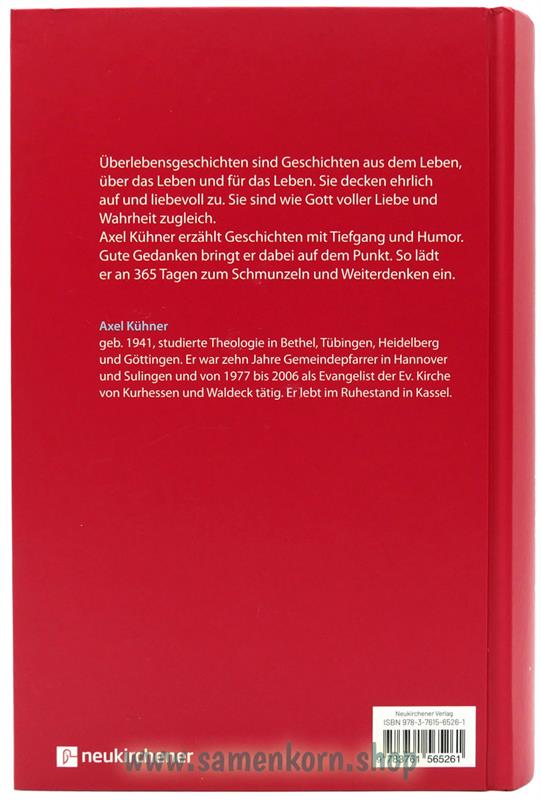Axel Kühner erzählt Geschichten mit Tiefgang und Humor. Gute Gedanken bringt er dabei auf dem Punkt. So lädt er an 365 Tagen zum Schmunzeln und Weiterdenken ein.