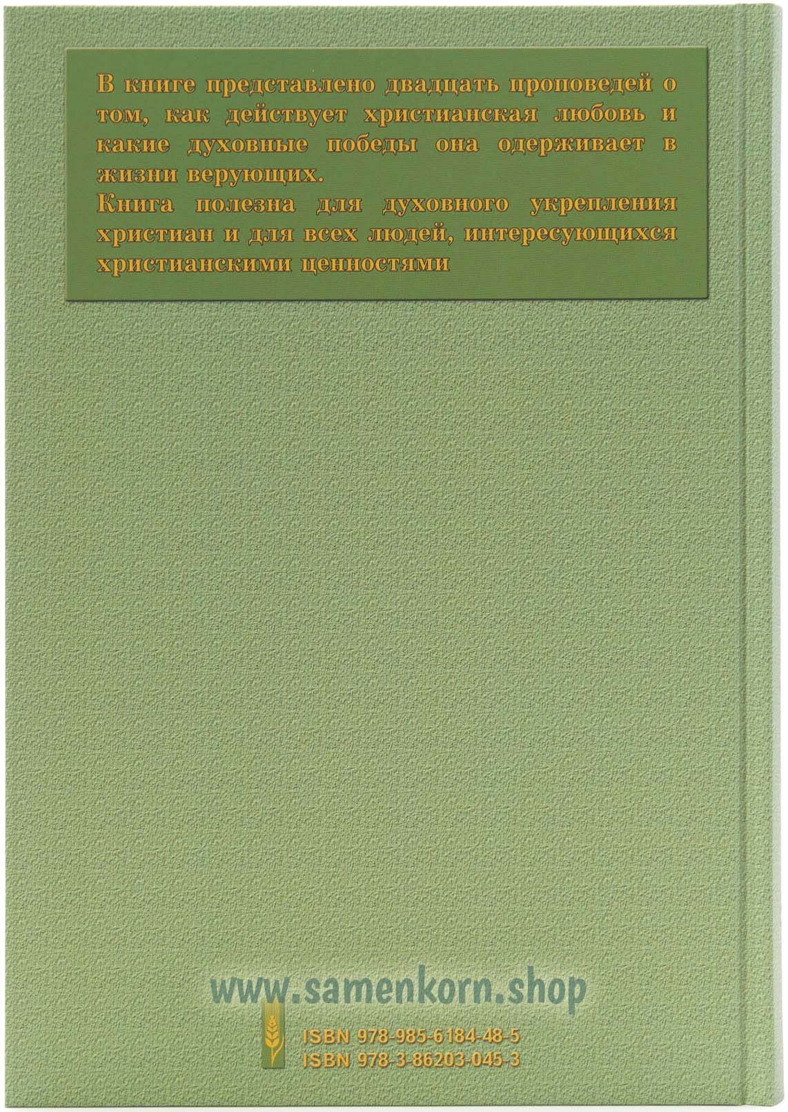 В книге представлено 20 поучительных проповедей о том, как действует христианская любовь и какие духовные победы она одерживает в жизни верующих. Книга полезна для духовного укрепления христиан и для всех людей, интересующихся духовными ценностями.