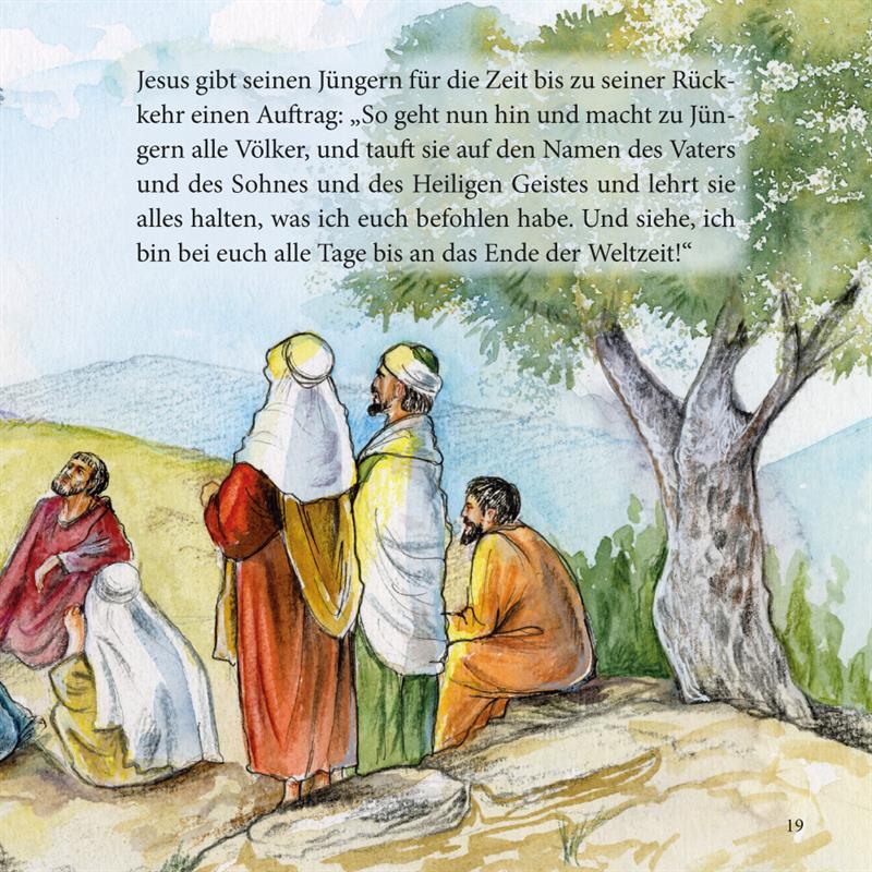 Was geschah in der Zeit zwischen der Auferstehung Jesu und seiner Himmelfahrt? Wie bereitete Jesus seine Jünger auf seine Himmelfahrt vor? Genau darum geht es in diesem Bilderheft