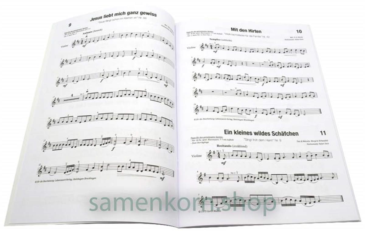 Die Klavierhefte „25 christliche Lieder für kleine Klavierfinger Heft 1 & 2“ (Artikel 3818 & 3819) sind mit diesem Violinenheft kombinierbar. Man kann die