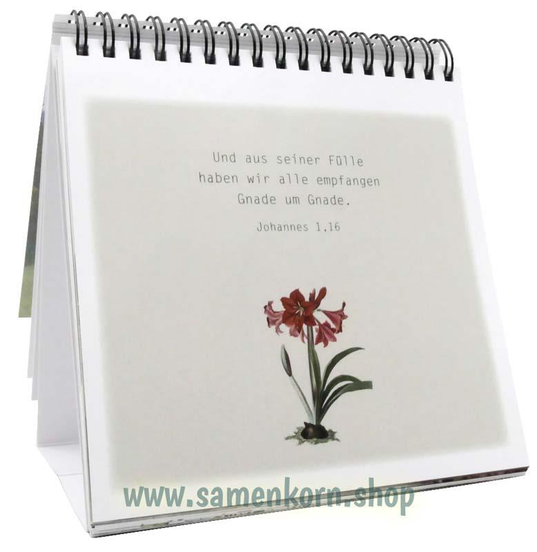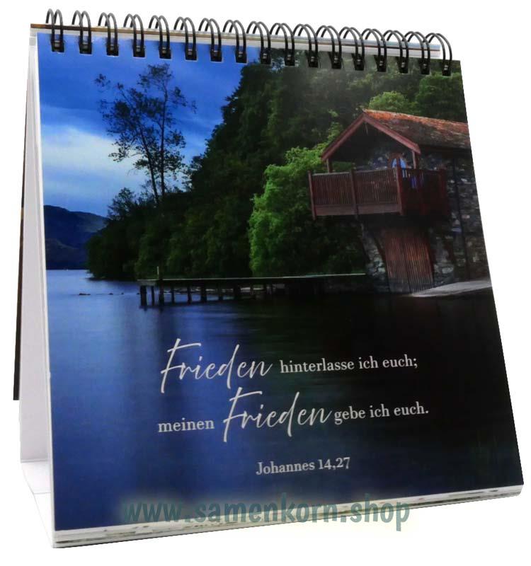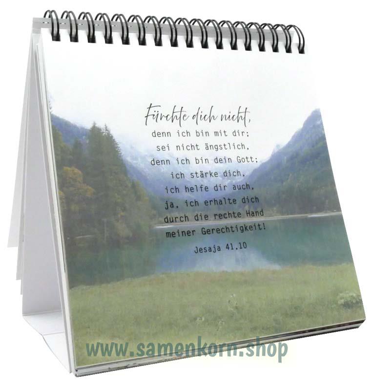 Aufstellbuch mit 52 ermutigenden Bibelversen und verschiedenen Fotos und Illustrationen.
