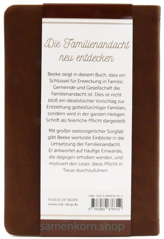 Mit großer seelsorgerlicher Sorgfalt gibt Beeke wertvolle Einblicke in die Umsetzung der Familienandacht. Er antwortet auf häufige Einwände, die dagegen erhoben werden, und motiviert den Leser, diese Pflicht in Treue durchzuführen.