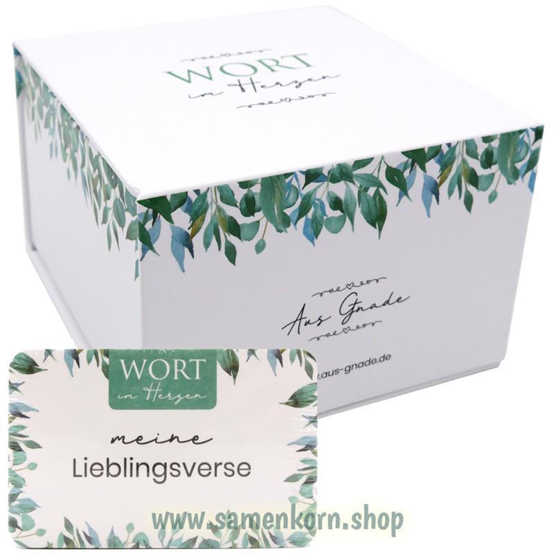 Ein hilfreiches und praktisches Kartensystem, das das organisierte Erlernen ausgewählter Bibelverse (Schlachter 2000) effektiv unterstützt. Auf der einen Seite ist der Vers und auf der anderen Seite die Bibelstelle abgedruckt. Die Karten sind auf 6 verschiedene Unterthemen zum Thema "Die Frucht des Geistes" aufgeteilt, pro Thema sind es 8 Karten. Die Themen sind Liebe & Freude, Langmut & Sanftmut, Freundlichkeit & Güte, Treue & Selbstbeherrschung, Friede & Wahrheit, Gerechtigkeit & Heiligung.