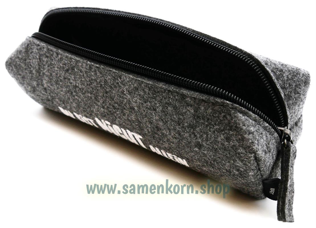 Hergestellt aus recycelten PET-Flaschen: Robustes Federmäppchen aus dunkelgrauem RPET-Qualitätsfilz, mit Reißverschluss.