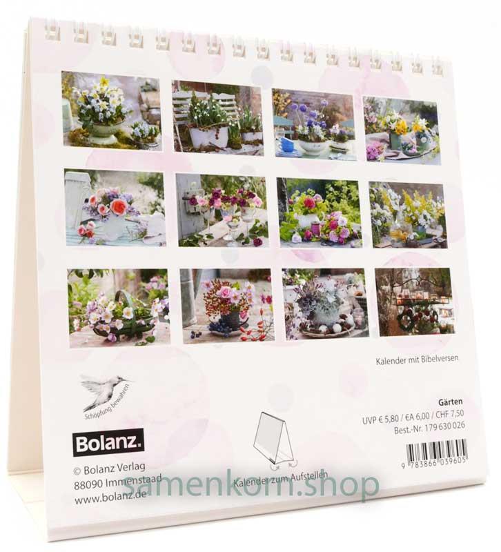 Tauche ein in die entspannende Welt des Gartens mit dem Tischkalender “Gärten”. Jeden Monat erwarten dich wunderschöne Fotos, die die Freude und Ruhe des Gärtnerns widerspiegeln. Auf jedem Monatsblatt rundet ein passender Bibelvers das Ganze ab und schenkt dir zusätzliche Inspiration und Besinnung. Der Kalender ist nicht nur ein optisches Highlight, sondern auch praktisch gestaltet. Mit 12 Postkarten zum Ausschneiden kannst du deine Lieblingsmotive teilen oder verschicken.