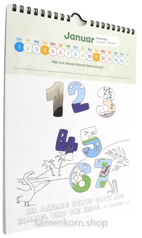 Dieser Kalender mit Spiralbindung, 24 Ausmalbildern, Geschichten, Rätseln und Bastel-Ideen begeistert Kinder im Vor- und Grundschulalter.