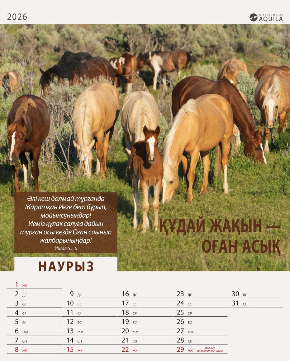 Настенный календарь на 2026 год с библейскими стихами на казахском языке и местом для записей