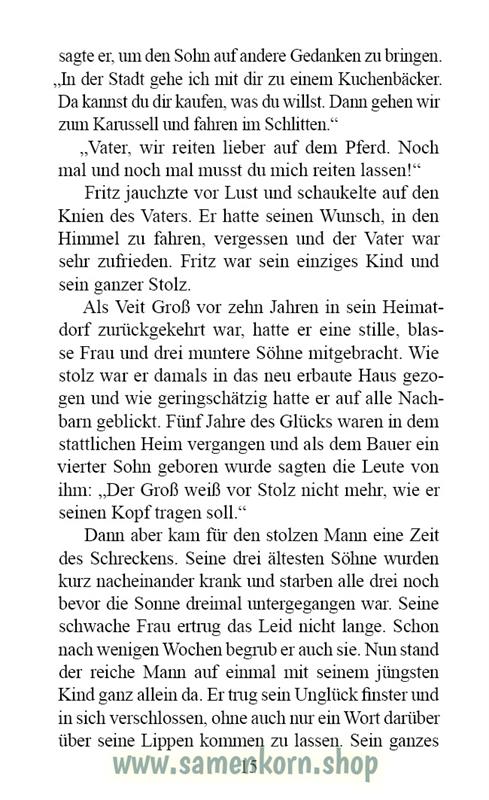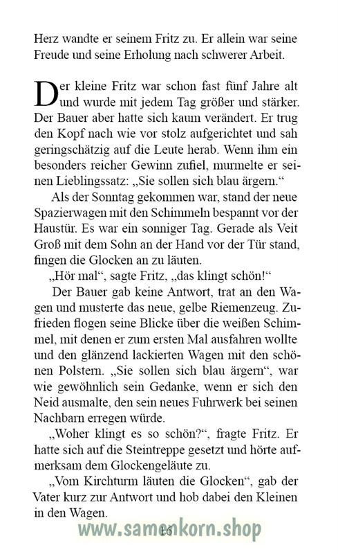 Veit Groß besitzt einen großartigen Hof. Über dem breiten Eingangstor steht in Goldbuchstaben: „Jeder ist seines Glückes Schmied". „Ich brauche keinen Gott! Ich weiß mir in jeder Situation zu helfen!", meint Veit. Doch eines Tages zerschlägt er mit eigener Hand das Glück, das er sich geschmiedet hatte und erfährt, dass nur einer den tiefen Frieden und die große Freude im Herzen schenken kann.
