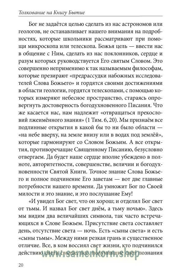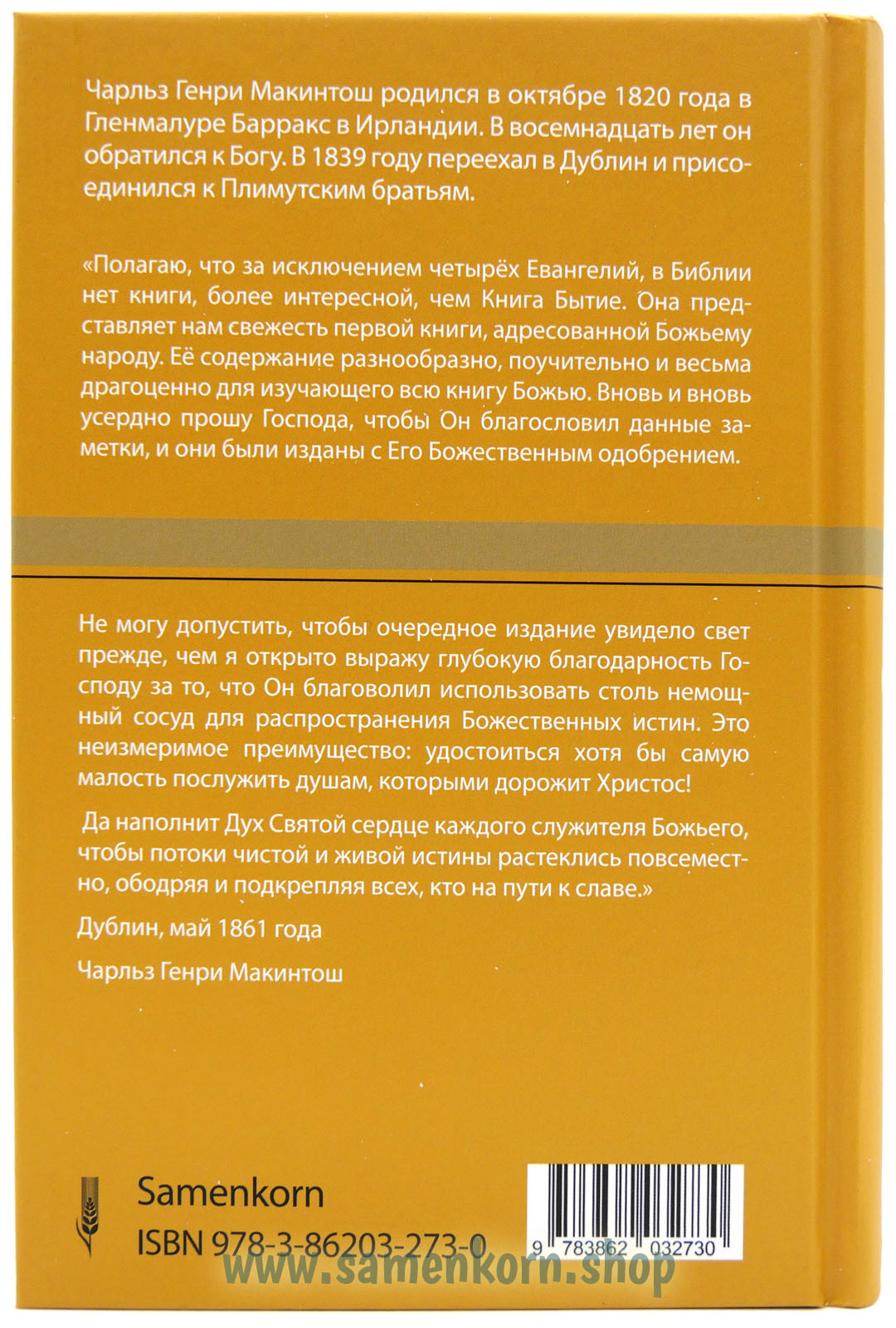 "Полагаю, что за исключением четырех Евангелий, в Библии нет книги, более интересной, чем Книга Бытие. Она представляет нам свежесть первой книги, адресованной Божьему народу. Её содержание разнообразно, поучительно и весьма драгоценно для изучающего всю книгу Божью." Чарльз Генри Макинтош