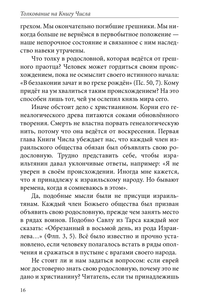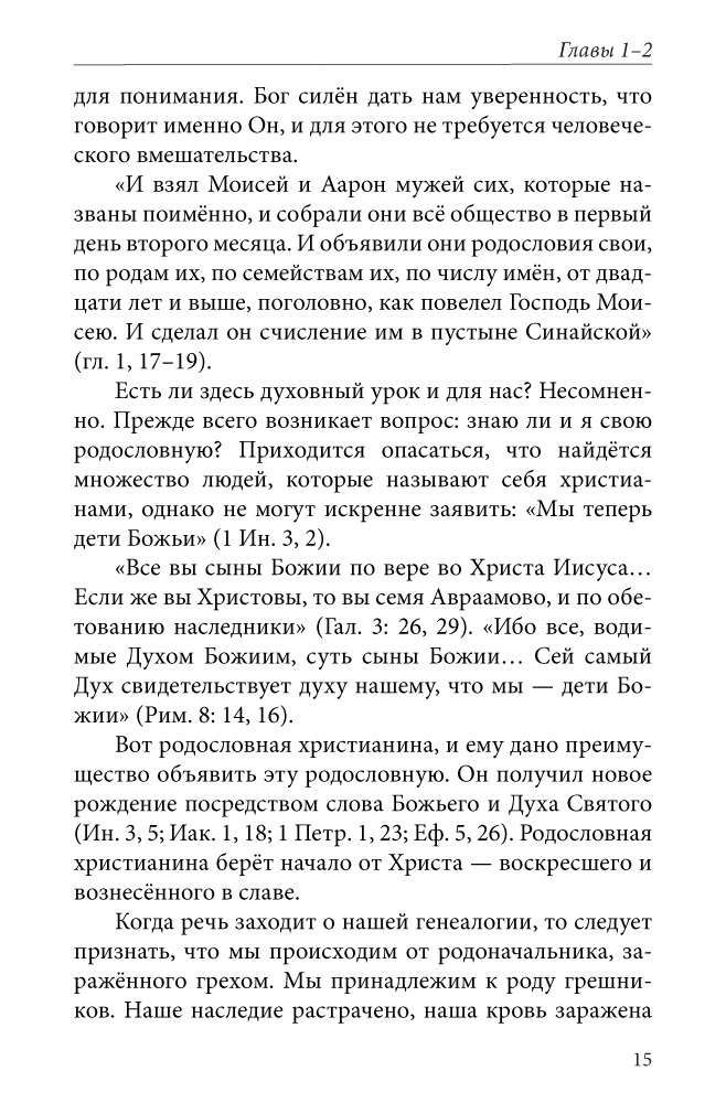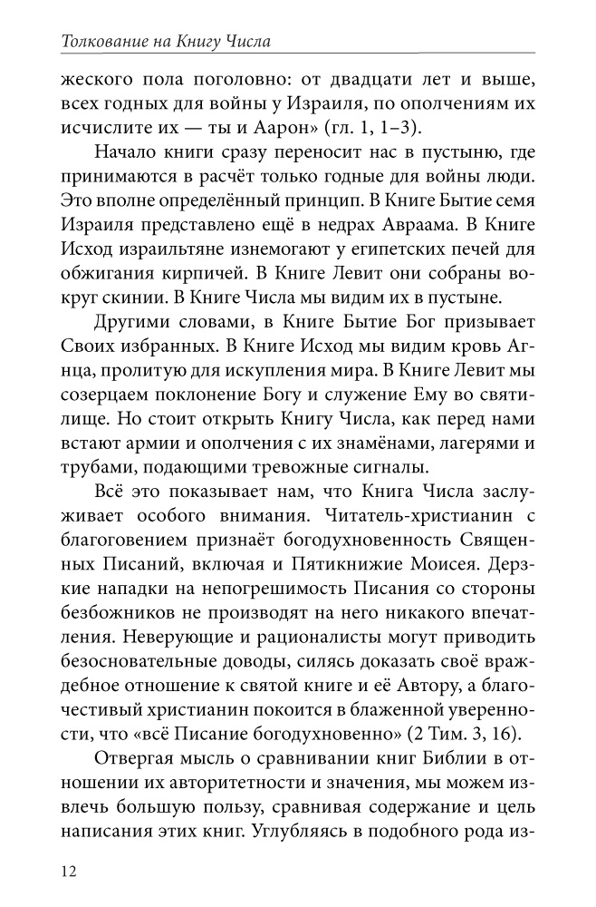 В книге Числа виден прообраз того, что мы должны делать в церкви. Божий народ показан в этой книге с трёх сторон: как воины, работники и служители или поклонники Бога. Эти три вида служения связаны с пребыванием в безусловной зависимости от Бога. В нашей борьбе, в работе, в благоговейном поклонении Богу мы зависим от Бога: все наши источники в Нём.