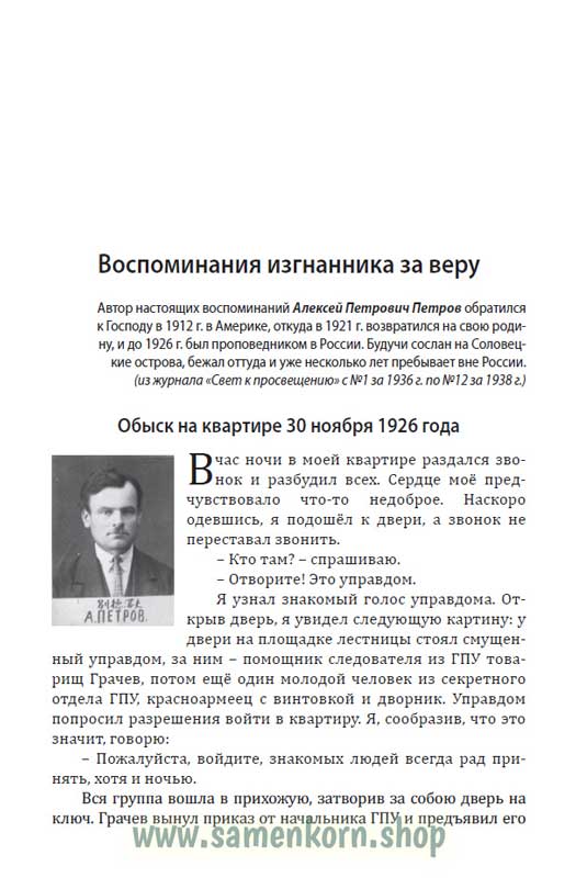 А.П. Петров, бывший пресвитер «Дома Евангелия» в Петрограде, вспоминает пережитое им в суровых застенках Ленинградской тюрьмы, в лагерях на Соловках и в ссылке (с 1921 по 1931) ...