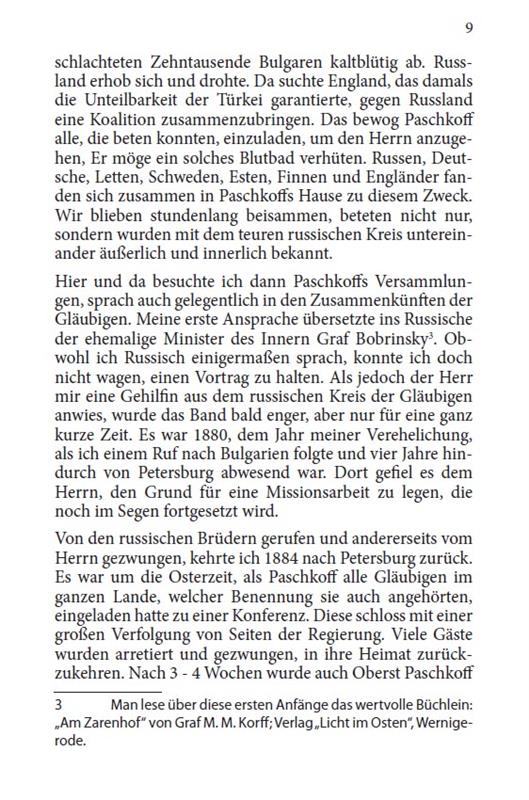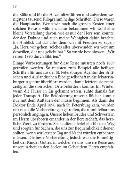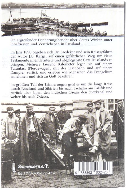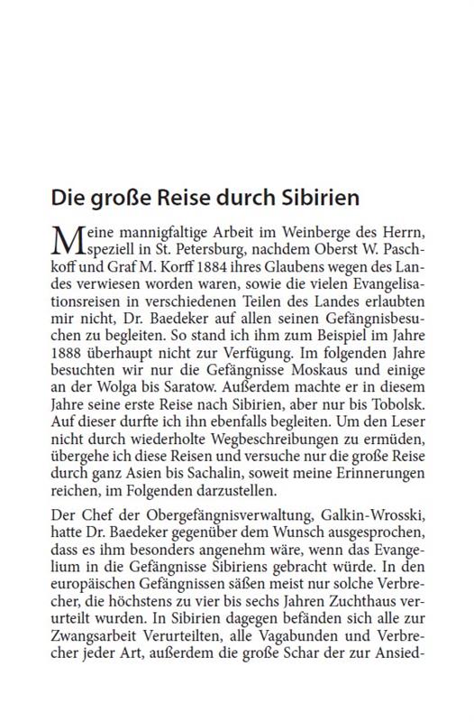 Im Jahr 1890 begeben sich Dr. Baedeker und sein Reisegefährte der Autor J.G. Kargel auf einen gefährlichen Weg, um Neue Testamente in entfernteste und abgelegenste Orte Russlands zu bringen. Mehrere Tausend Kilometer legen sie auf einem Tarantass (Pferdewagen), mit der Eisenbahn und auf einem Dampfer zurück und erleben wie Menschen das Evangelium annehmen und sich zu Gott bekehren.